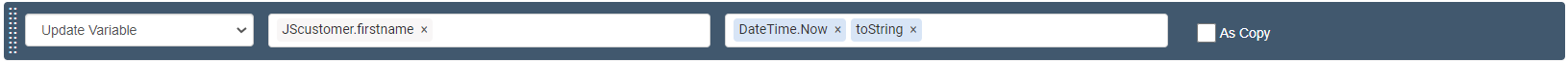 It immediately accepts updating the "JSCustomer" variable of JSON data type with string, boolean and numeric values as follows:
