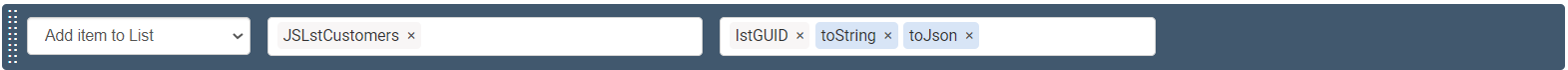 If the user still wants to assign the “lstGUID” to the variable “JSLstCustomers”, the user must convert it to JSON list data type using the toJsonList() function: lstGUID.toJsonList()