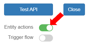 Note: If “Entity actions” is not enabled, testing an API using entity actions will result in the status of “failed” in the response.