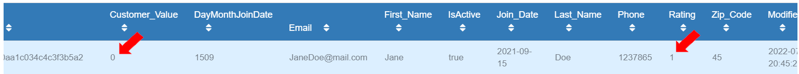 {"Address":"Rose Street","City":"Kuala Lumpur","Customer_Value":5,"Country":"Malaysia","Email":"[email protected]","First_Name":"Jane","IsActive":true,"Join_Date":"2021-09-15","Last_Name":"Doe","Phone":"1237865","Rating":1000,"Zip_Code":"45"}