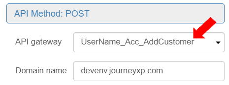 Select the default API gateway as “UserName_Acc_AddCustomer”. If the user The default API gateway will be selected if the user does not select an API gateway
