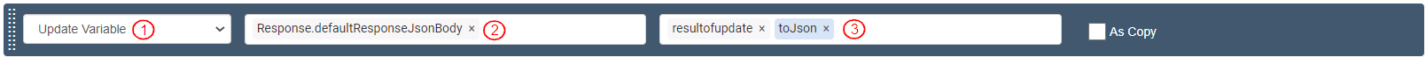 3. Select Value as Variables>resultofupdate>toJson(). It displays as “resultofupdate.toJson()”.