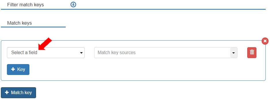 The match key is then defined by selecting a field from the data source and the relevant source.