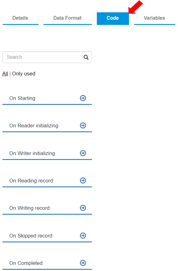 “isFromReader”: This variable is of the data type “boolean”. Users can use this variable to verify if the record is skipped in the “on Reading record” section or “on Writing record” section.