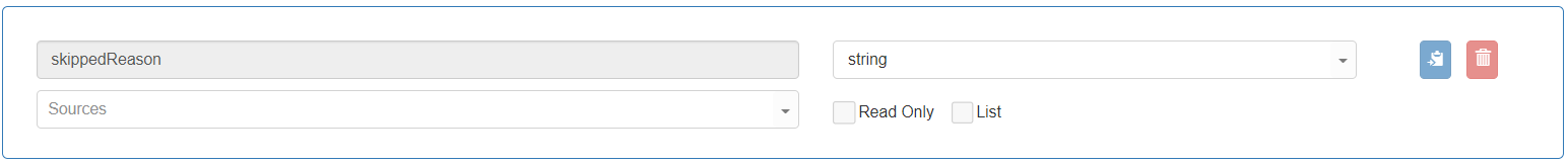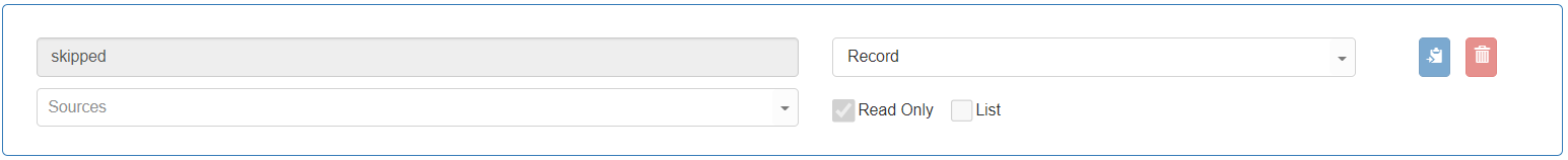 “skippedReason” of the data type “string”: This variable contains the reason for skipping a record (if any) defined by the user.