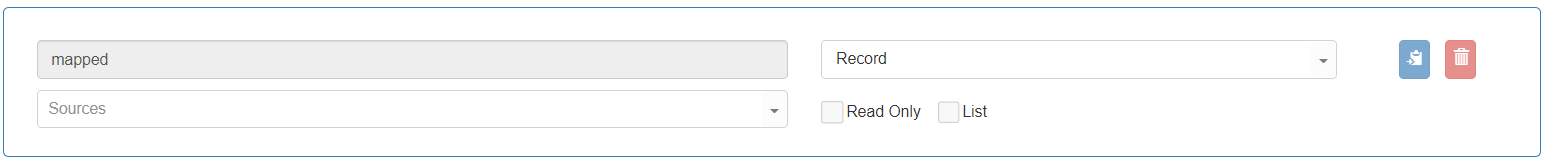 “mapped” of the data type “Record”: This variable contains the details of the record as in the fields present in the Data Format tab>Field Mapping.