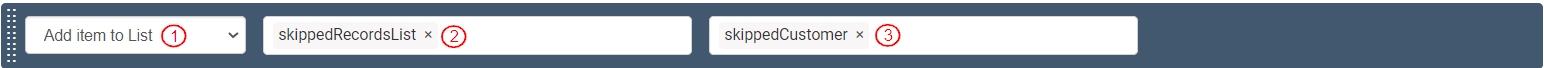 Before storing skipped records in an entity, the records need to be stored in a list. In this exercise, the deleted records details are stored in a variable in the “On Skipped record” section that will be used to create a record in the “On Completed” section.