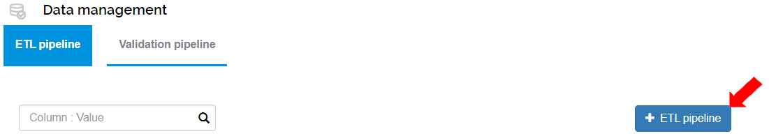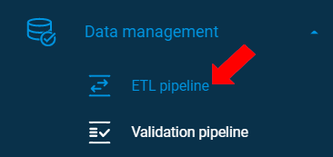 To go to the ETL pipeline template, click on “ETL pipeline” under the “Data management” menu on the left side panel.