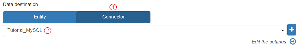 In this exercise, “Tutorial_MySQL” is selected from the drop down menu. The connector can be added by selecting a connector from the drop-down menu or a new connector can be created by clicking the [+] button.