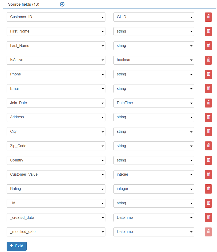 Enter destination column to map the reader field to in Mapped to e.g. in case of Customer ID, enter “Customer_ID”. The destination table column name is exactly the same as the name entered in this field.