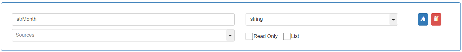 Select Variables>strMonth. The source field displays as “0”“strMonth”.