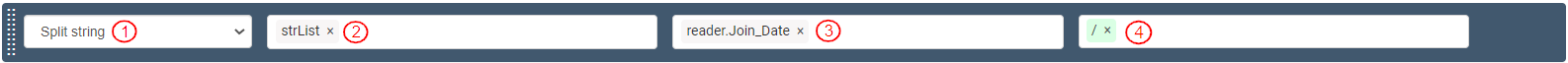 To store the “Join_Date” value in the Reader as string before reformatting it, define the first variable as follows: Variable name: “strList”, Data Type: “string”, Select the “[List]” checkbox. It displays as “List”. This defines the variable to store a list of strings.