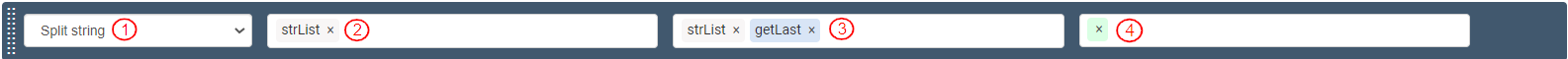 Select the Source as Variables>strList>getLast(). It displays as “strList.getLast()”.