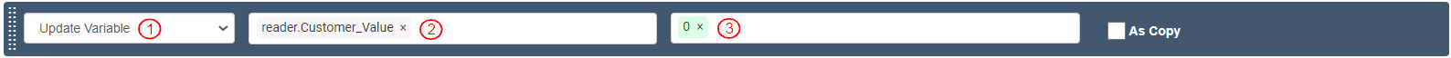 To assign a value to “Customer_Value” field added to the Reader, add and define an Action as follows: