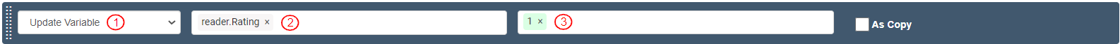 To assign a value to “Rating” field added to the Reader, add and define an Action as follows: