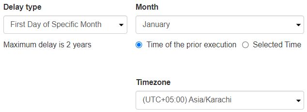 Set a delay for the first day of a specific month.