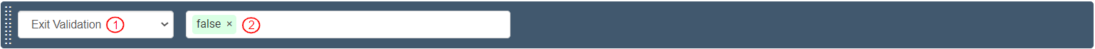 Add the last action in the section to define βExit Validationβ action as βfalseβ. Based on the βfalseβ value, the βOn Validation step failβ section of the Validation>Code tab is executed.