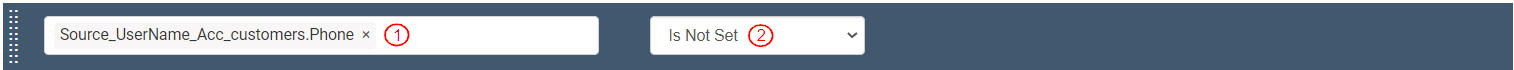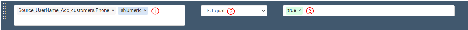Select Source as Source_UserName_Acc_customers>Phone>isNumeric(). It is displayed as βSource_UserName_Acc_customers.Phone.isNumeric()β.
