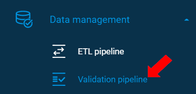 To go to the Validation pipeline, on the left side panel, click βValidation pipelineβ under the βData managementβ menu.
