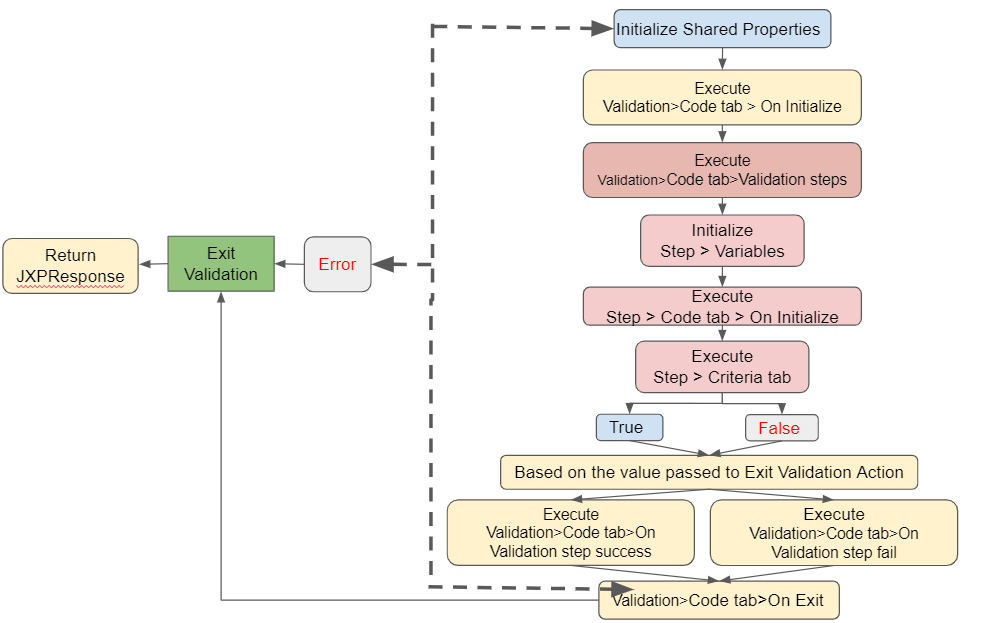 Initialize Variables Execute Validation>Code tab>On Initialize function. Execute Code tab>Validation steps function.