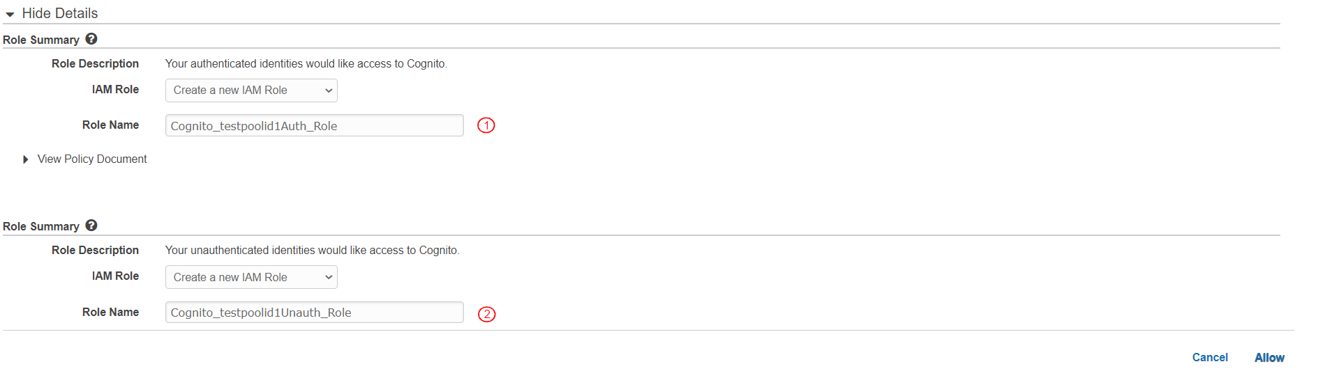 IAM Role Name for Unauthenticated Identities access to Cognito.