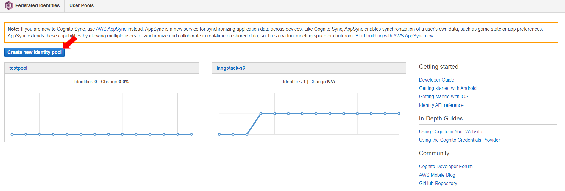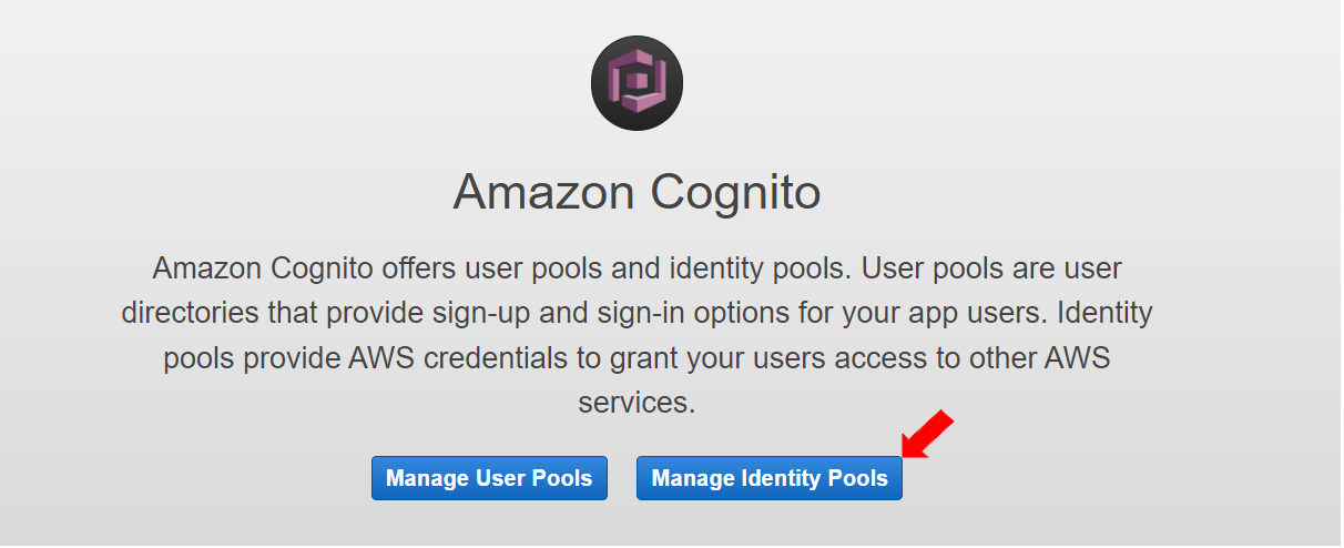 Go to Amazon Cognito Console and click on [Manage Identity Pools].