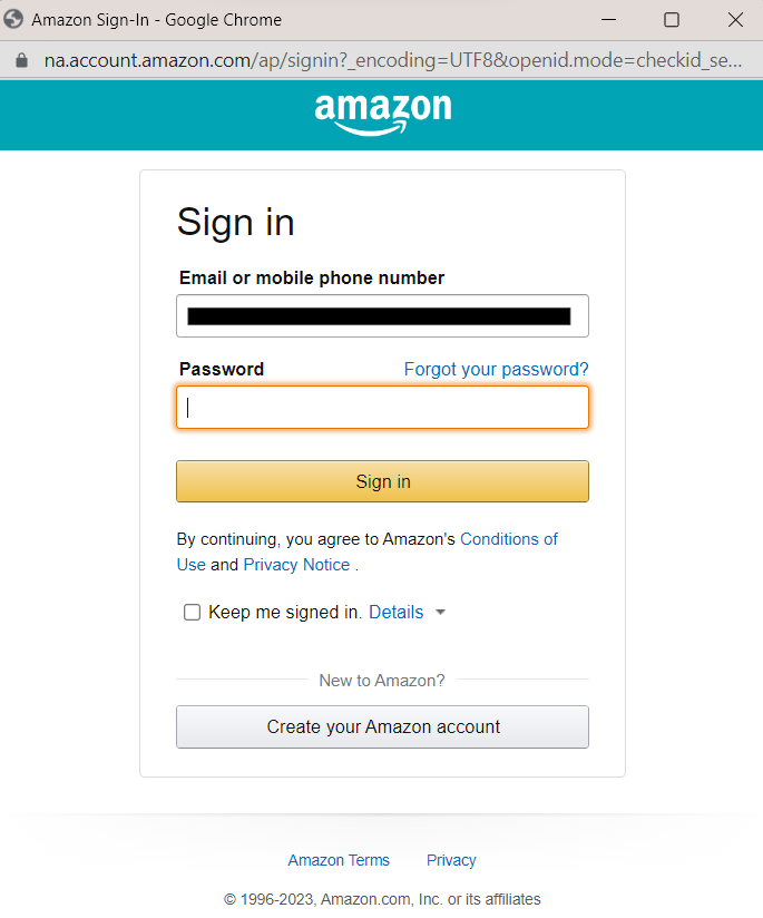 * On clicking \[Login with Amazon], a sign in page displays.&#x20;