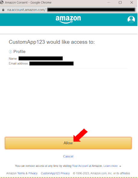 # User Consent for OAuth 2.0 Client through Login with Amazon
