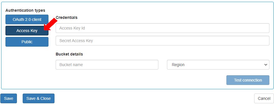 Enter the bucket details and click [Save]