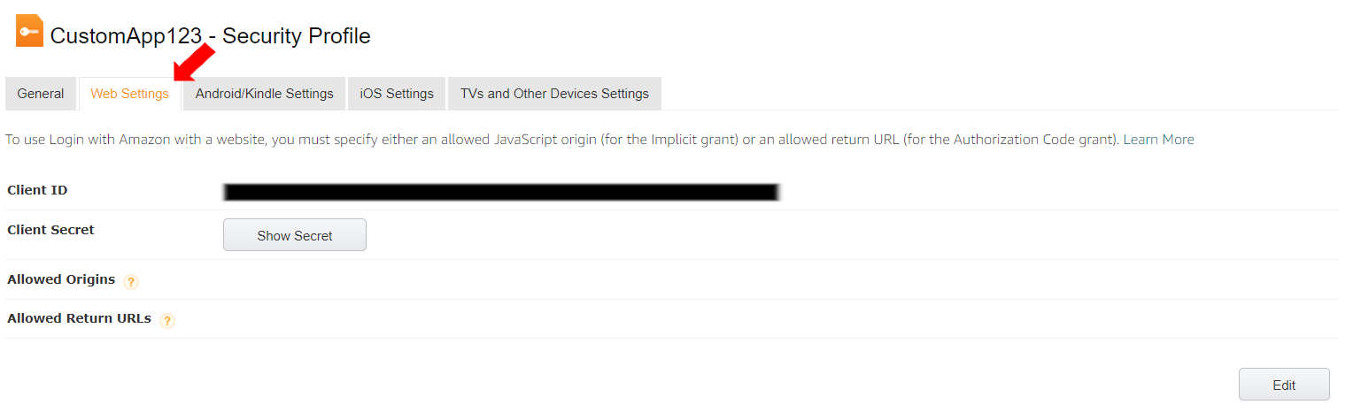 * In the Security Profile Management > Web Settings tab, view the following credentials:&#x20;