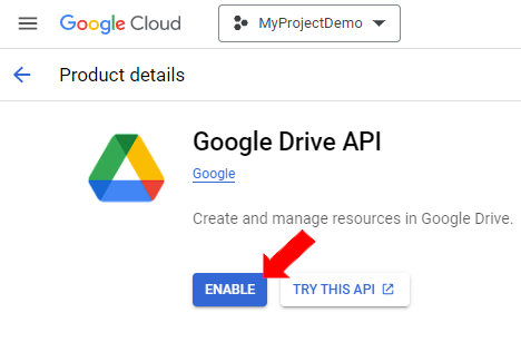 To use Google Drive API, you need a Google Cloud Platform Project. A Project in GCP contains the settings for the Google API to be enabled (in this case, we need to enable Google Drive API) and how an App communicates with the Google Drive (the permissions or scope of data).