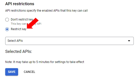 In the API Restrictions section, select the [Restrict Key] radio button.