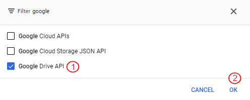 Select the Google drive API option.