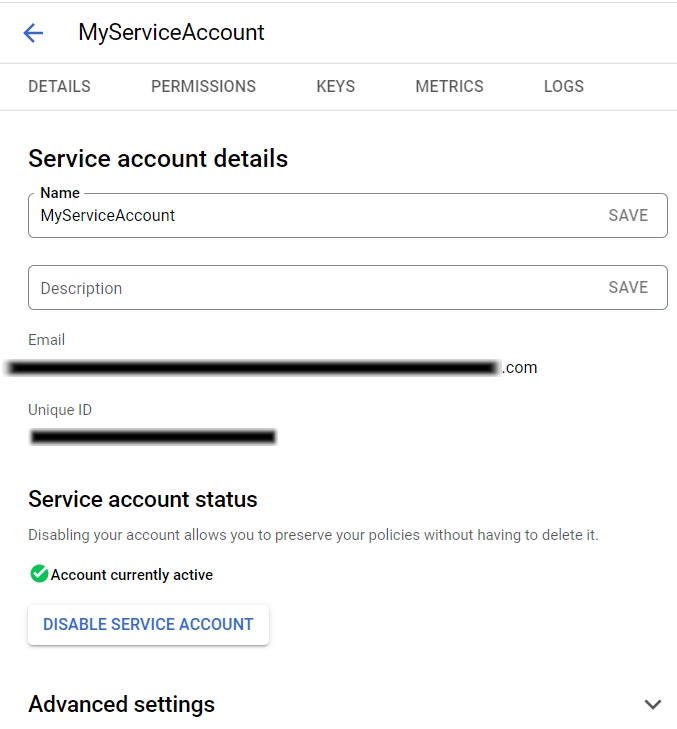 Under Service account details