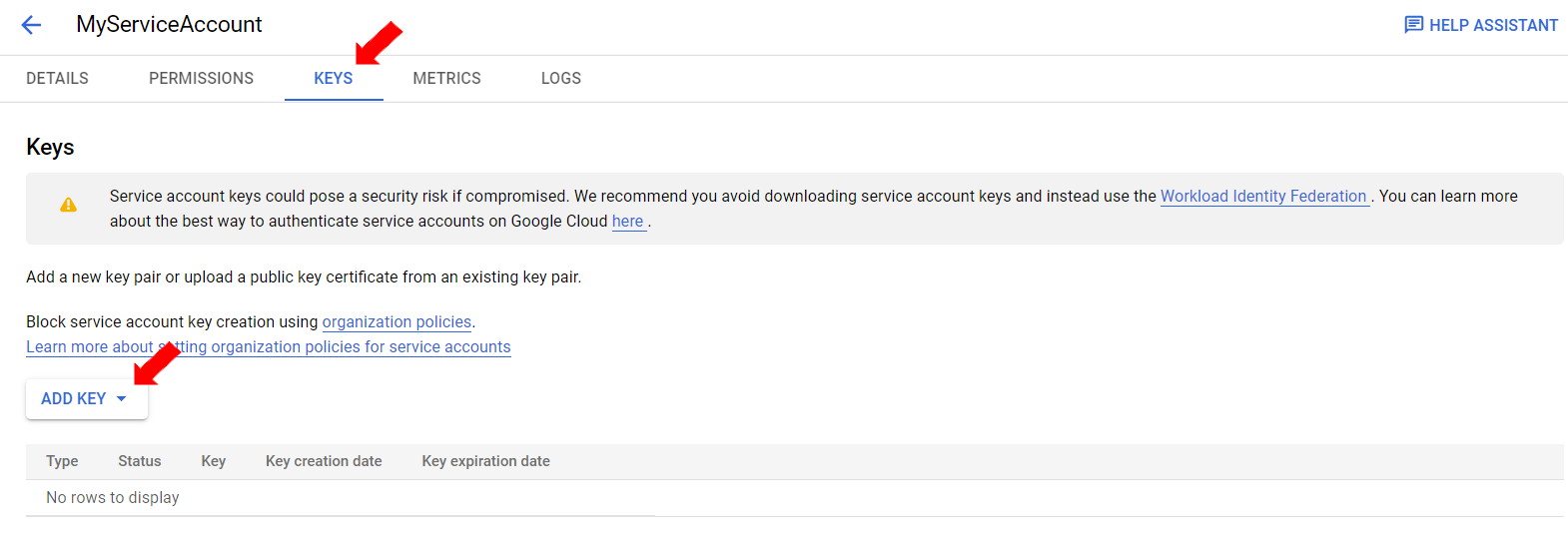 Creating Service Account Key
