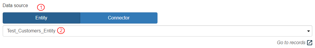 2. The “Test\_Customers\_Entity” entity is selected from the drop-down menu.