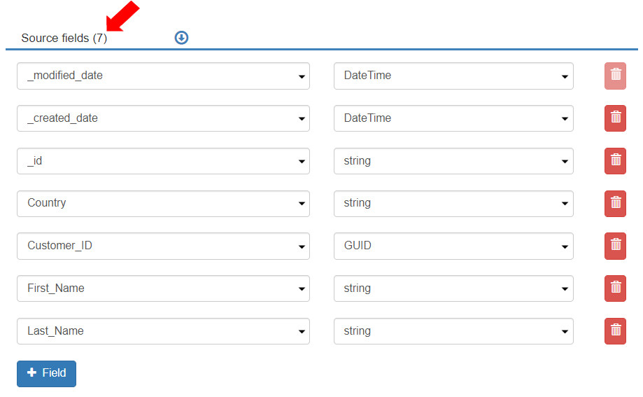 * The column names are copied to Field Mapping by clicking “Copy to Field Mapping”.