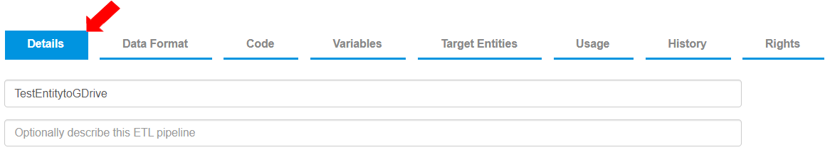 * An ETL pipeline named “TestEntitytoGDrive” is created.