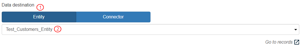 The “Test_Customers_Entity” entity is selected from the drop-down menu.