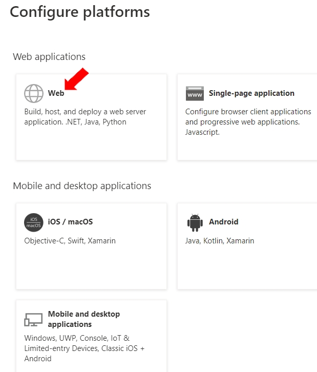 Under “Configure platforms”, click on “Web”.