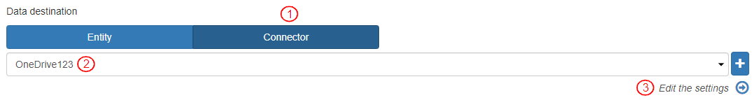 To connect to the data destination, the necessary information is added in the Data destination section: